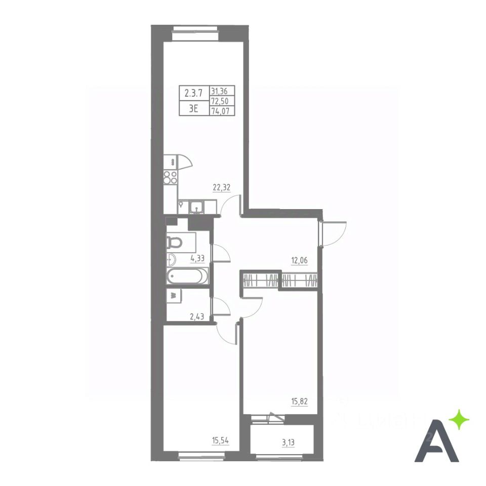 Общая площадь74,07 м2