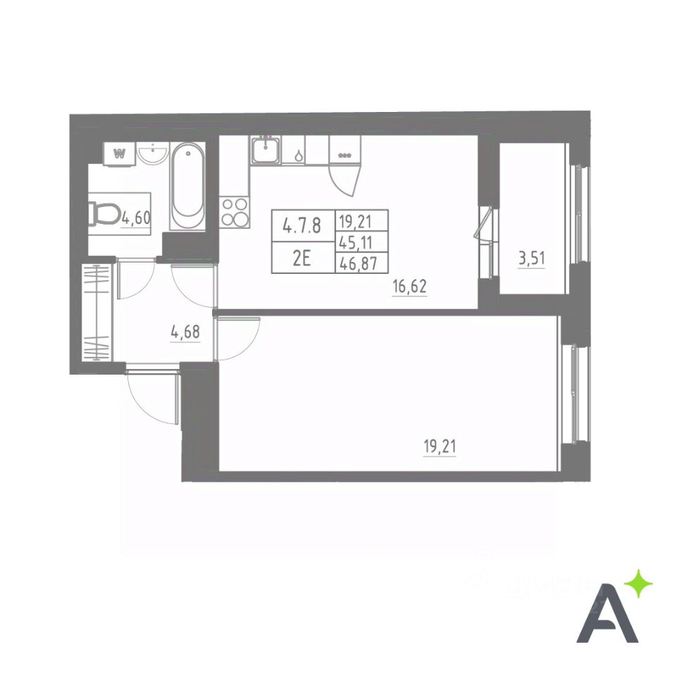 Общая площадь46,89 м2