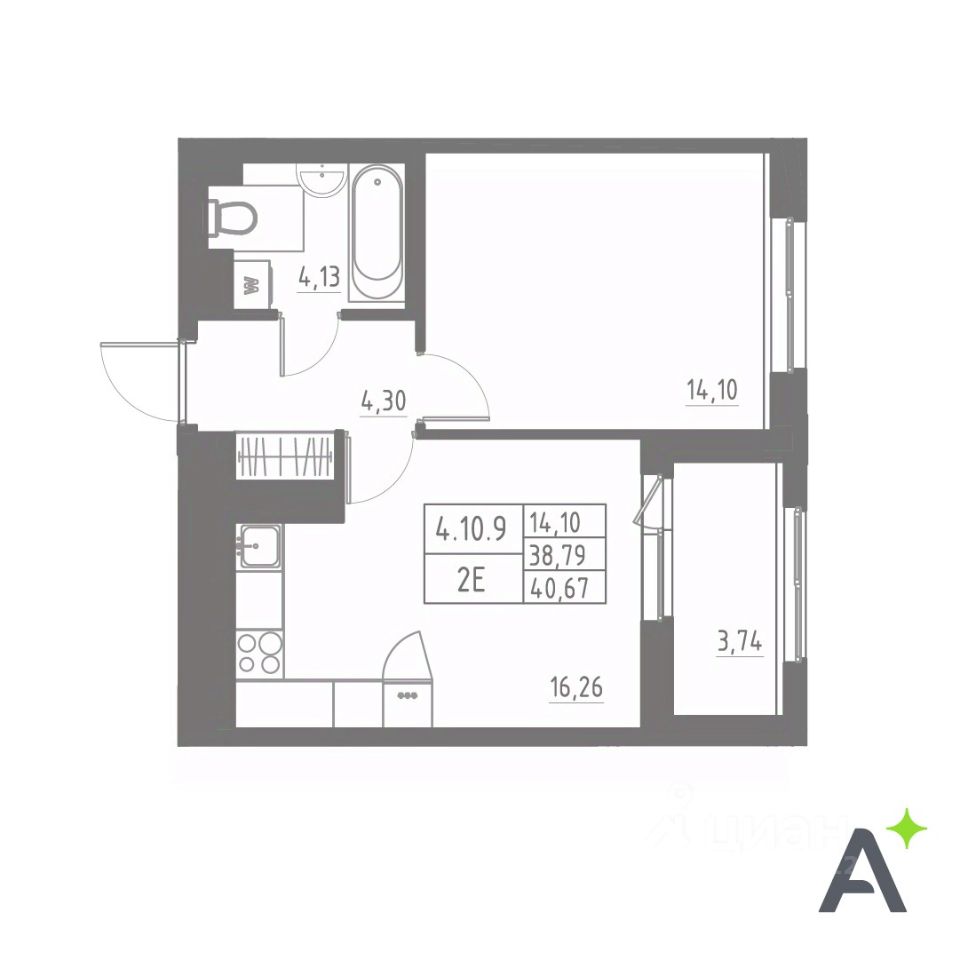 Общая площадь40,66 м2