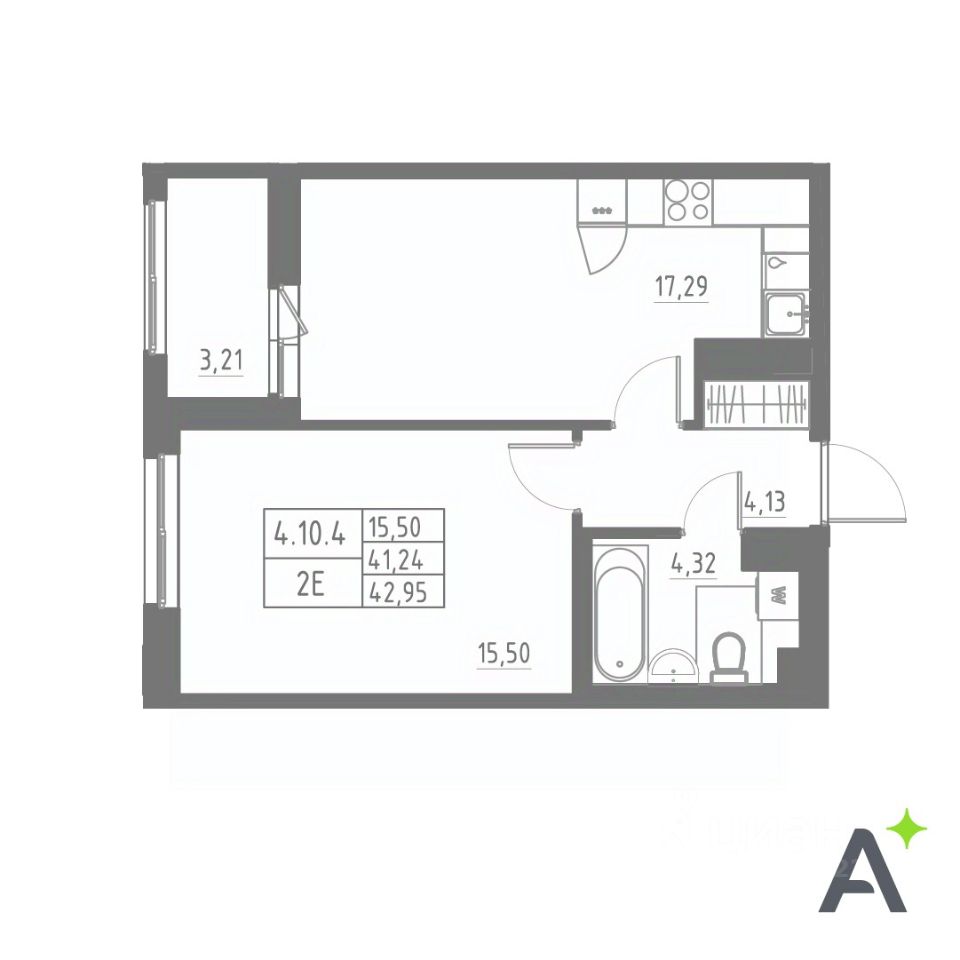 Общая площадь42,85 м2