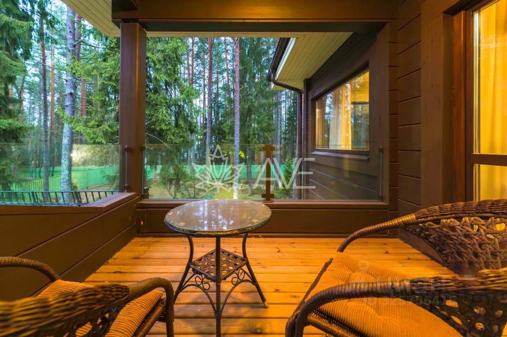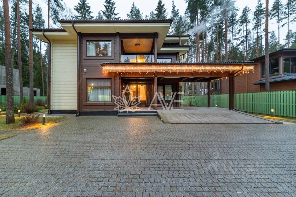 В Курортном районе Санкт-Петербурга между Комарово и Зеленогорском среди корабельных сосен на благоустроенном участке расположился полностью меблированный двухэтажный дом, построенный из отборного клееного бруса по индивидуальному проекту.