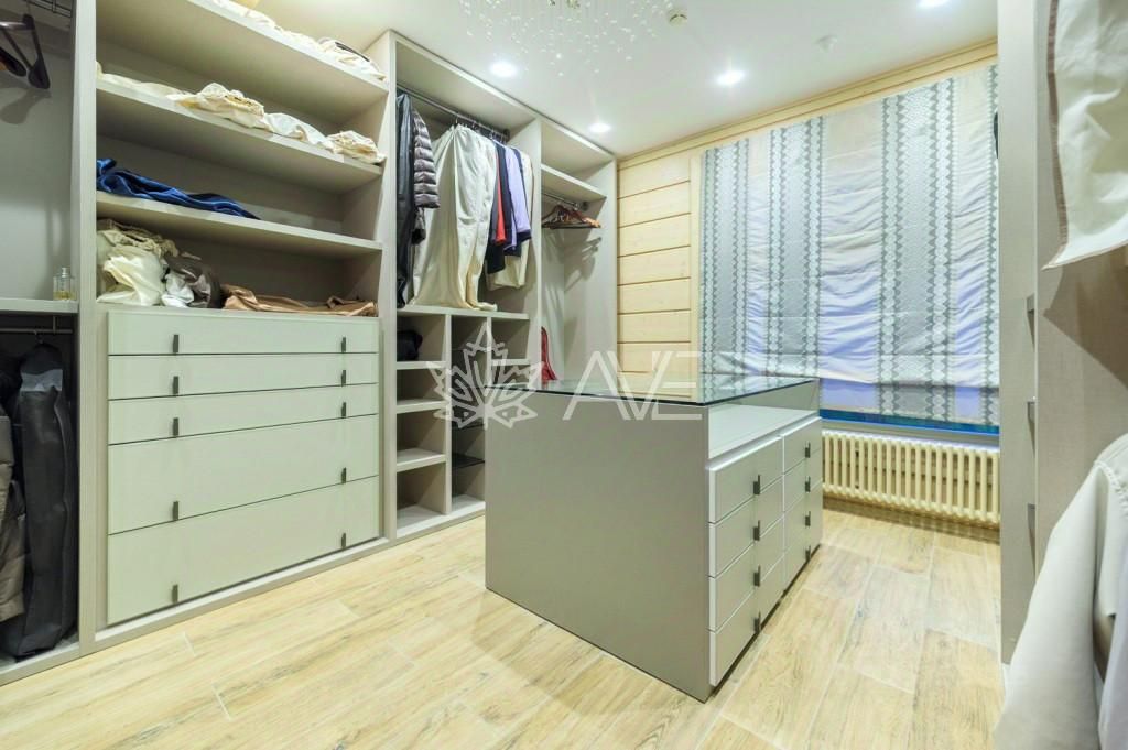 Индивидуальность данного домовладения отражена в функциональной планировке, продуманной для комфортной жизни своих владельцев. На первом этаже дома при входе располагается гостевой санузел с душевой, гостевая спальная комната, просторная постирочная-гладильная с бытовым помещением, оборудованная гардеробная комната для верхней одежды с островом. Широкий светлый холл насквозь пронизывает первый этаж, наполняя его естесственным светом и замыкается на кухне, оборудованной премиальной встроенной техникой и оснащенной отдельно стоящим островом с барными стульями, обеденной зоной с мягкими креслами, диванной гостиной с ТВ-зоной и дровяным камином, отделанным натуральными породами благородного камня и выходом на остекленную уютную террасу с уличной мебелью, которая обращена на приватный благоустроенный участок. Так же при входе в дом расположено техническое помещение с оборудованием Viеssmаnn и заведенными центральными коммуникациями: - Магистральный газ - Центральный водопровод Водоканал Санкт-Петербург - Центральная канализация Водоканал Санкт-Петербург - Электричество 25кВт прямой договор - Оптоволокно - Видеонаблюдение - Инверторные кондиционеры Daikin На второй этаж ведет широкая удобная лестница в один пролет. Второй этаж спланирован как комфортное жилое пространство и включает в себя две просторные десткие спальные комнаты с выходом на общий балкон, обращенный на зеленые кроны деревьев вглубь участка. В двух детских спальных комнатах предусмотрено зонирование на пространство для учебы с письменным столом, пространство для сна, индивидуальный гардероб и индивидуальный санузел с ванной, родительская спальная комната так же разделена на зону для сна и зону с диваном и туалетным столиком, функциональную просторную гардеробную комнату и санузел с душевой. Так же на втором этаже располагается пятая комната, которая отведена под рабочий кабинет.