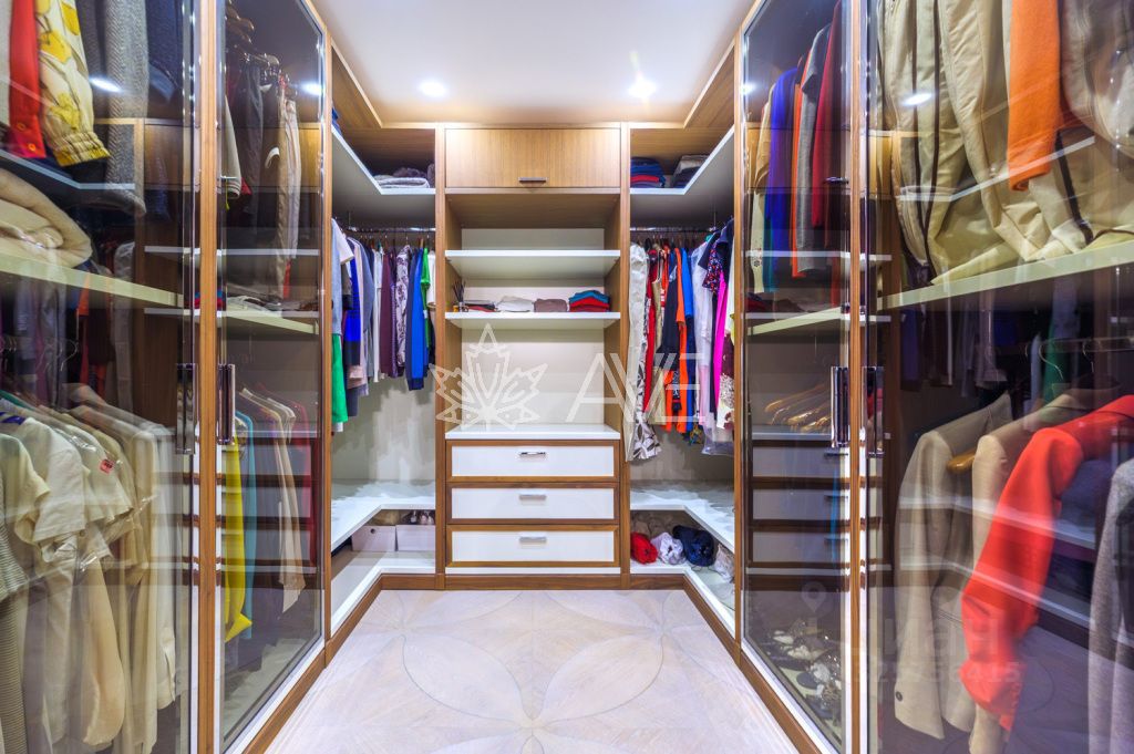 Индивидуальность данного домовладения отражена в функциональной планировке, продуманной для комфортной жизни своих владельцев. На первом этаже дома при входе располагается гостевой санузел с душевой, гостевая спальная комната, просторная постирочная-гладильная с бытовым помещением, оборудованная гардеробная комната для верхней одежды с островом.