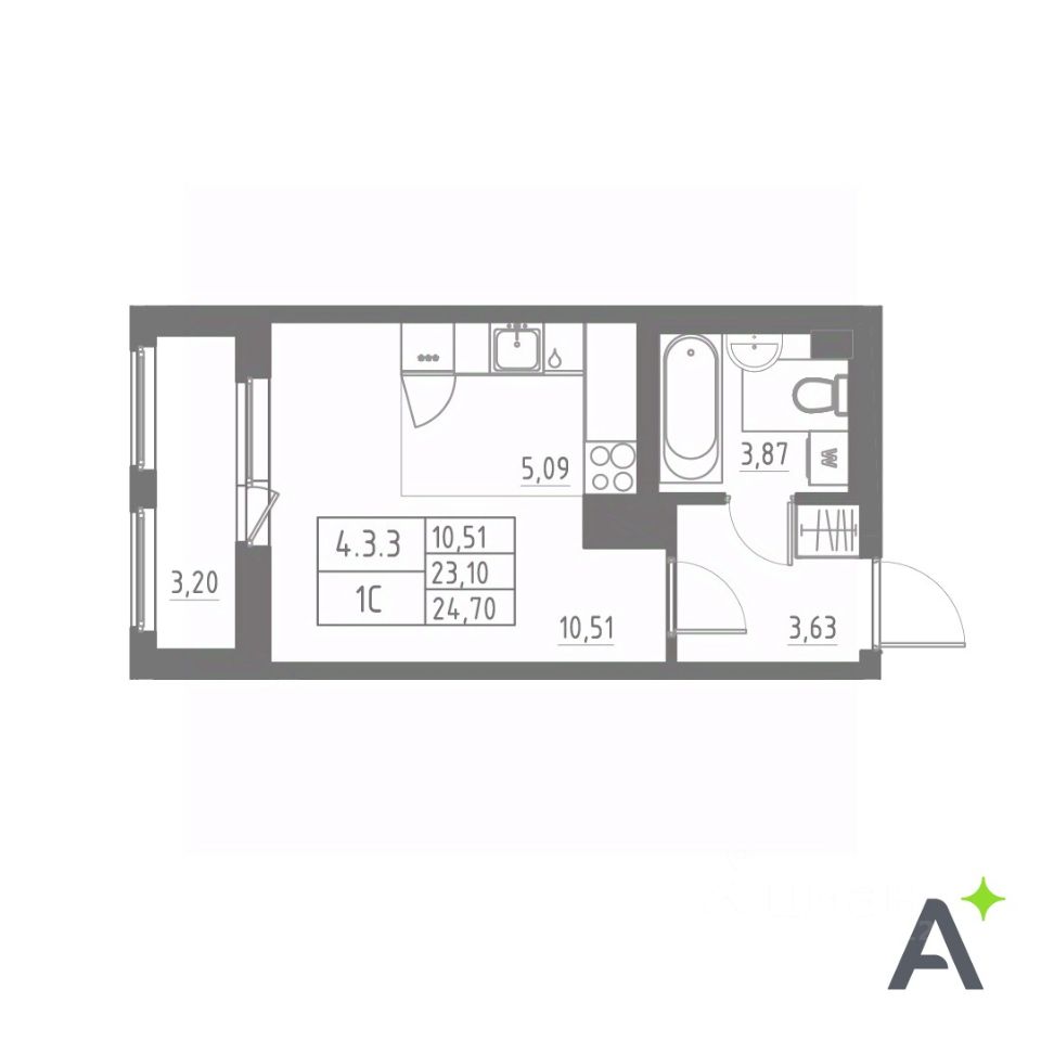 Общая площадь24,7 м2