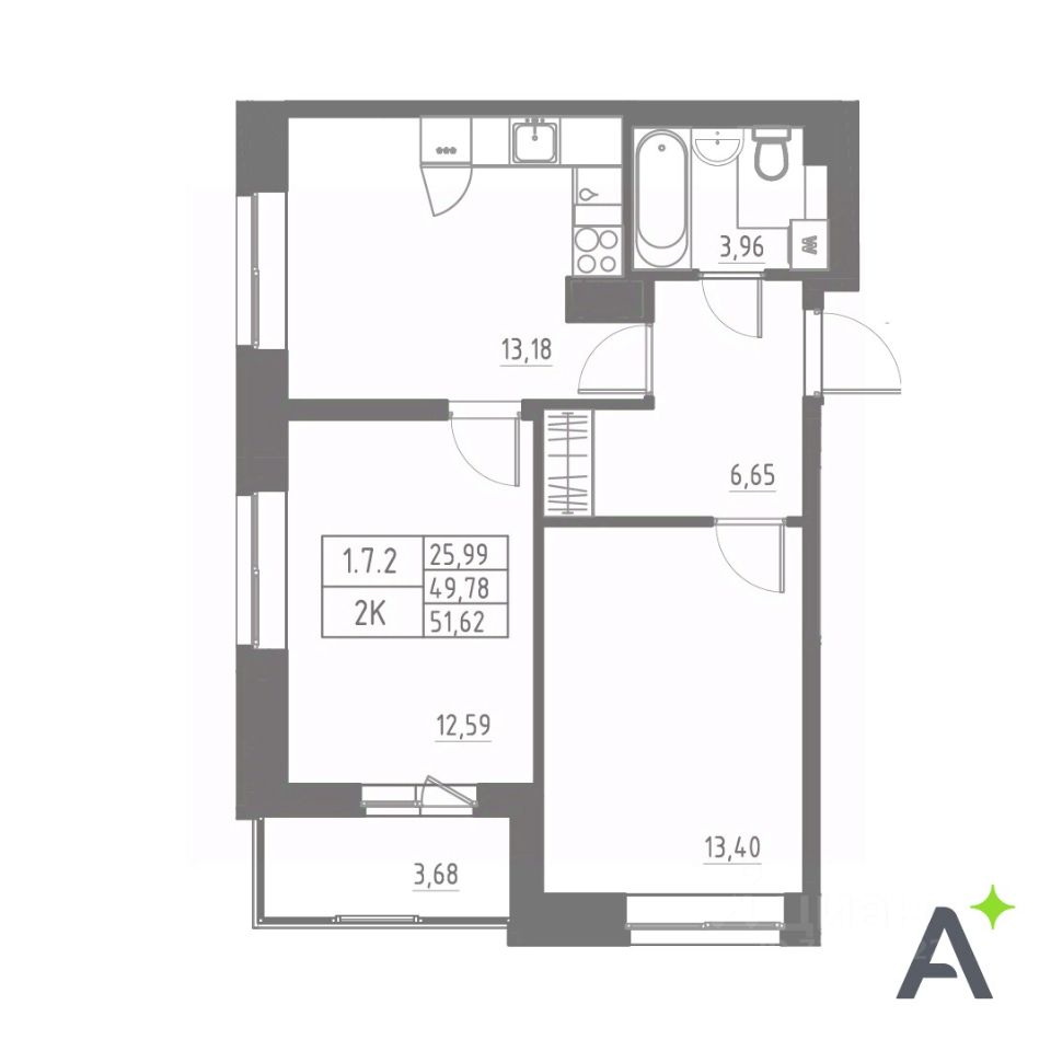 Общая площадь51,62 м2