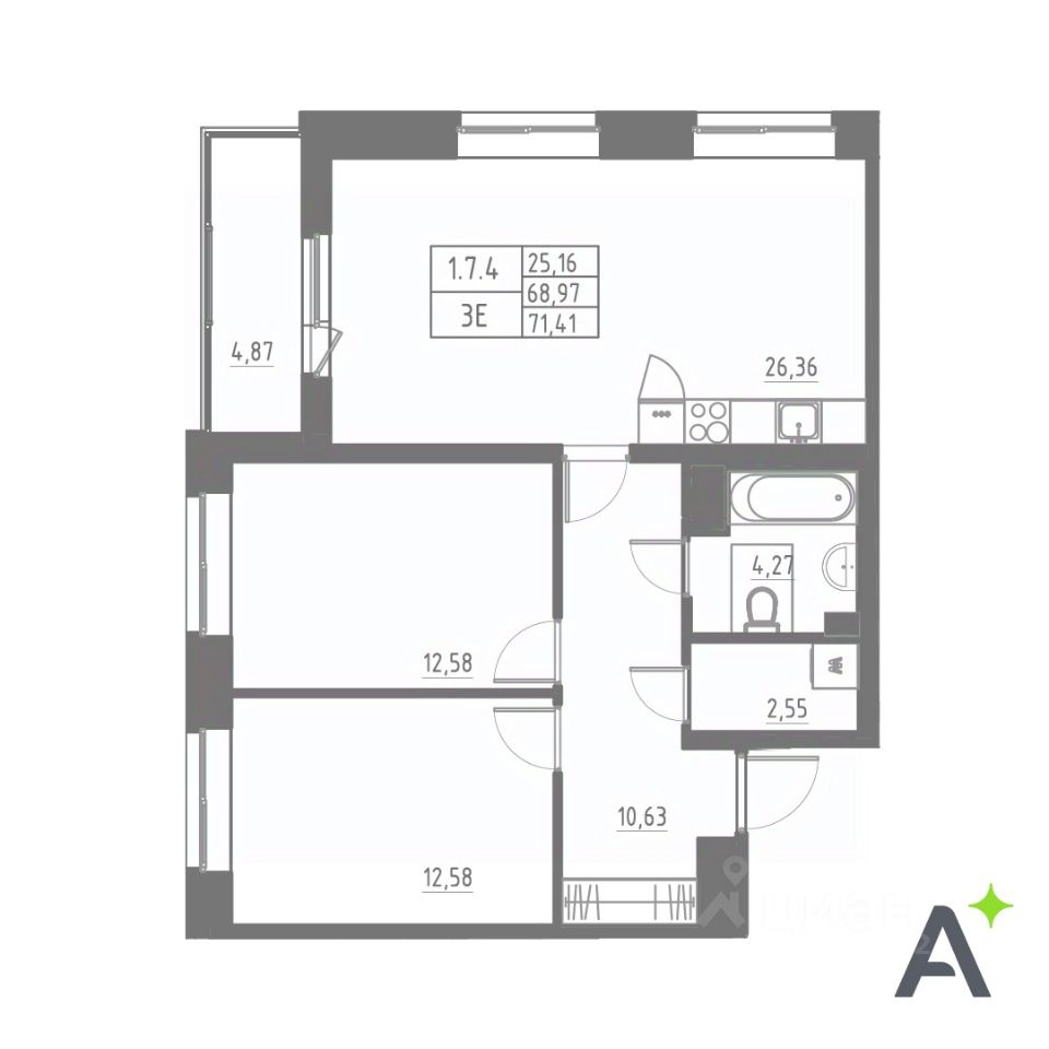 Общая площадь71,41 м2