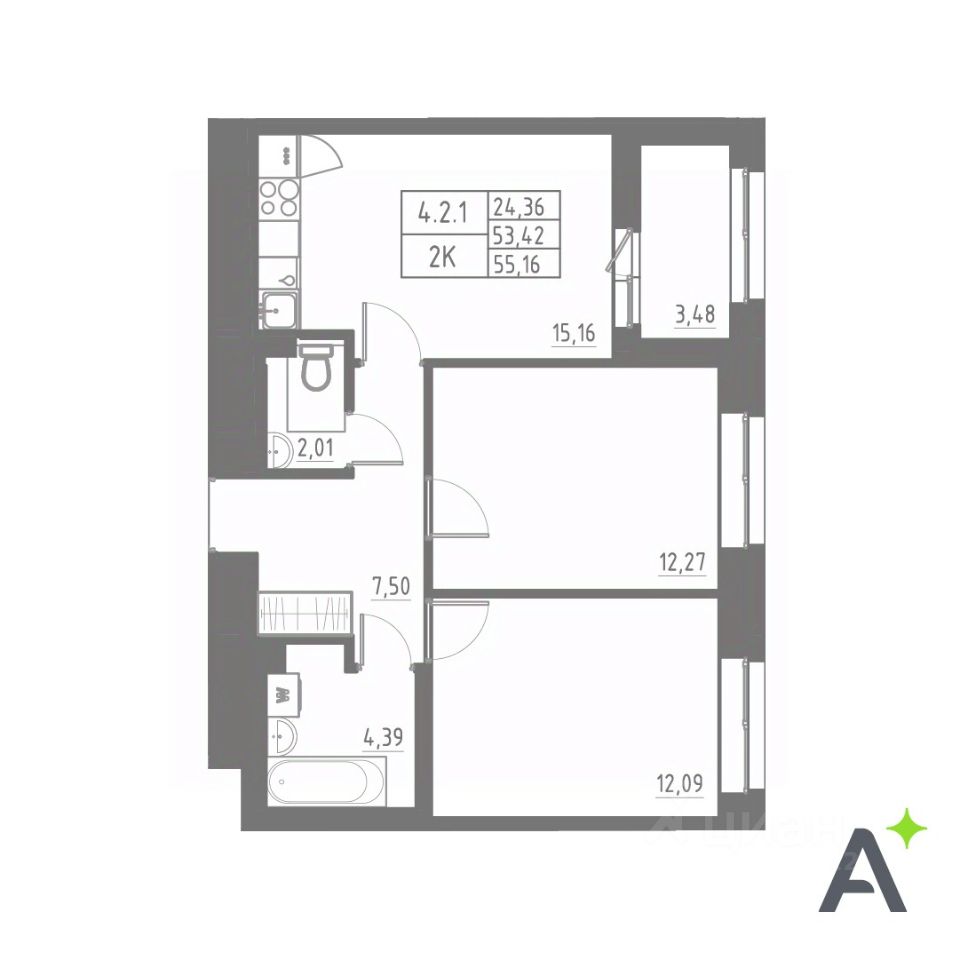 продам 2-к квартира12 161 216 ₽