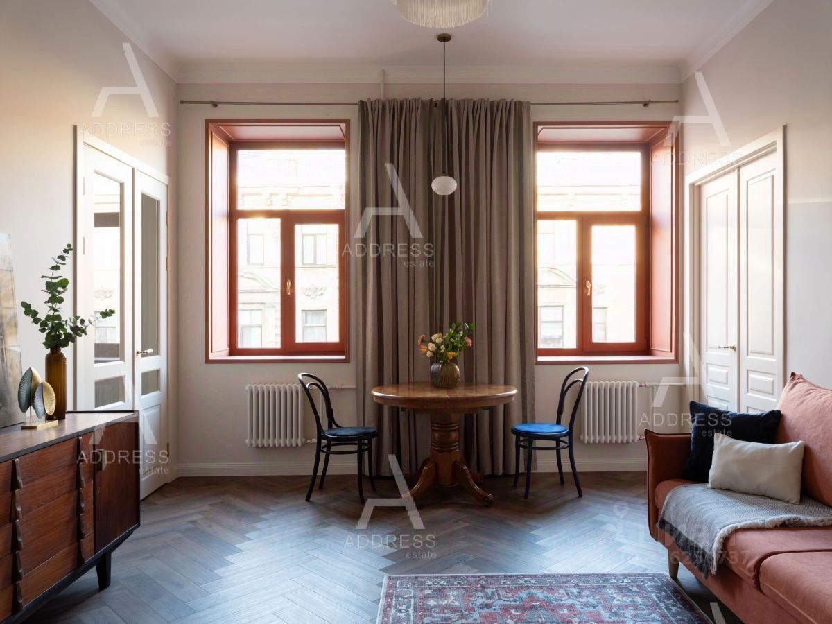 О квартире: - 55.5 кв м. - очень светлая и просторная - потолки 3,7 метра - центральная вода - заменена вся электрика и трубы - 2 гардеробные (в коридоре и спальне) - встроенная мебель и техника - Комод 1950х годов ( восстановленный) - Стулья братьев Тонет 1860 и 1910 - оригинал (восстановленные) - Люстры ручной работы - Столешницы натуральный гранит - Испанская плитка в с/у