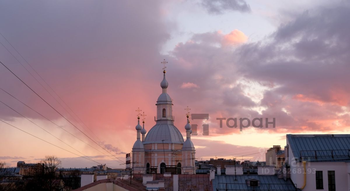 из окон открывается редкий вид на храм и старый Петербург, словно с открытки,