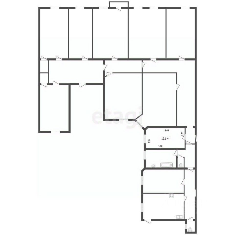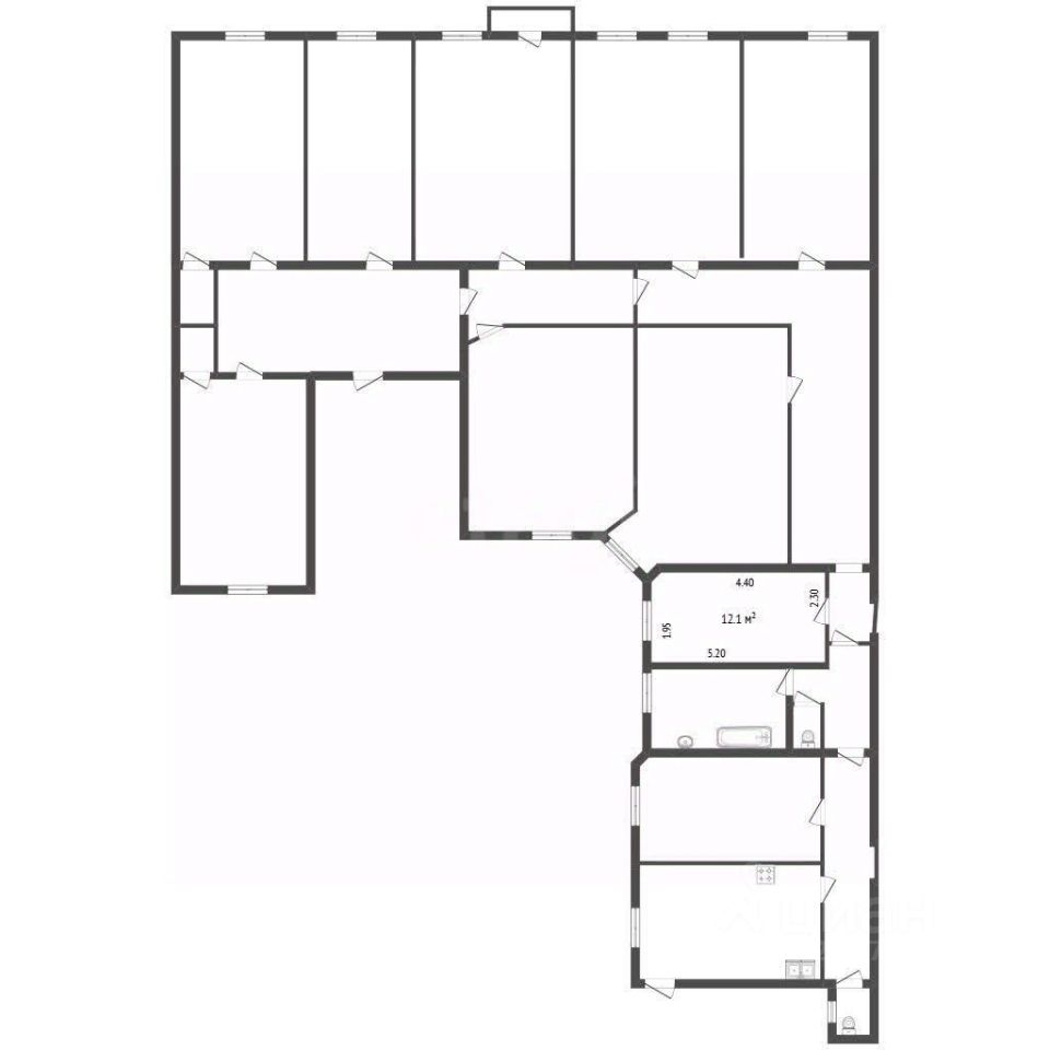 - всего одна квартира на этаже - площадь комнаты 12.1 м - площадь кухни 20.3 м - площадь квартиры 335.6 м - высота потолков 3.3 м (есть 2-ой ярус) - 2 с/у - ванная комната с окном - перекрытия смешанные - в комнате сделан второй ярус , на котором расположено спальное место
