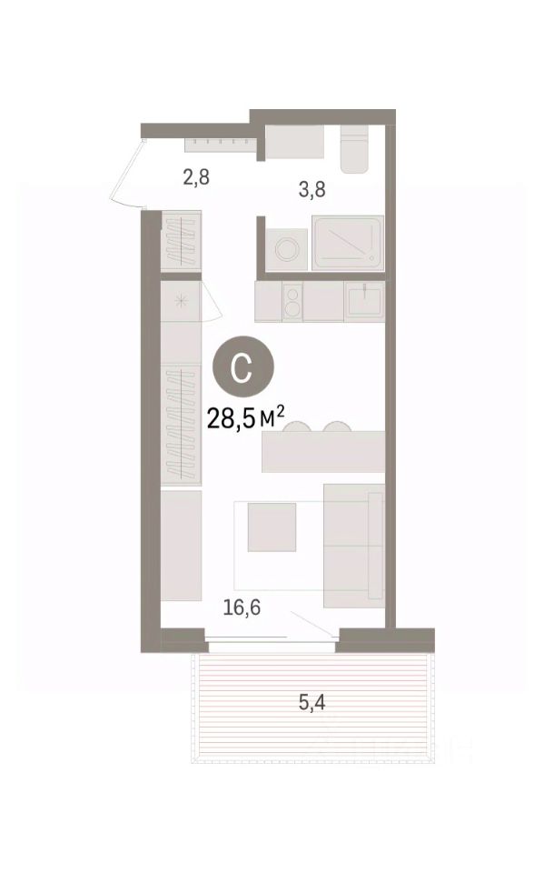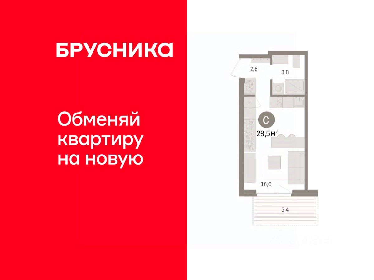 Студия в жилом районе ''Пшеница''. Особенности планировки: балкон, предчистовая отделка. квартиры в нашей базе: ПШЦ05.2-Ж4.4.4.