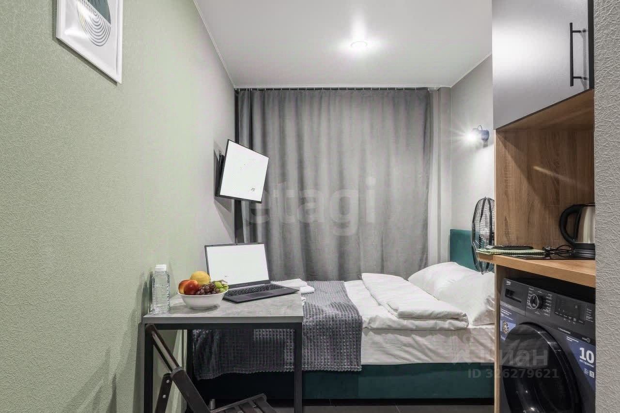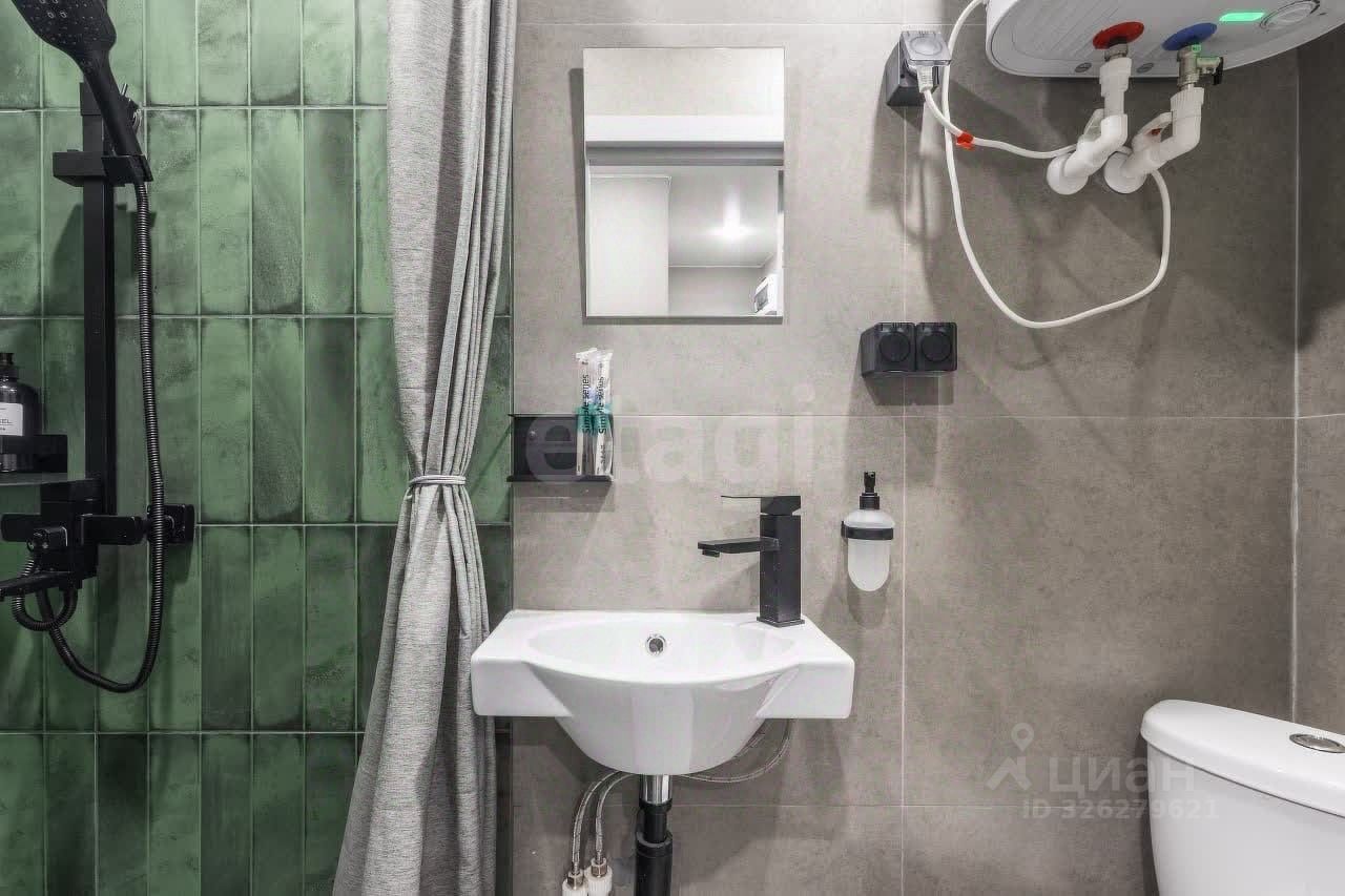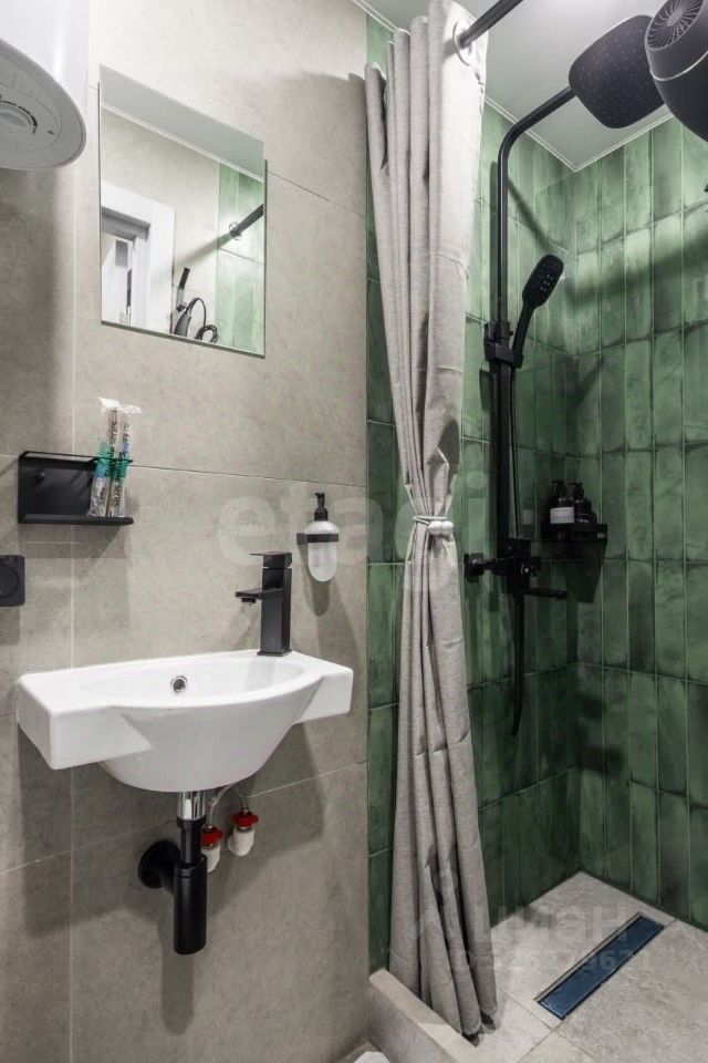 Студии с дизайнерским ремонтом в единой стилистике . В ванной уложена дизайнерская плитка,черная сантехника, самые современные отделочные материалы.