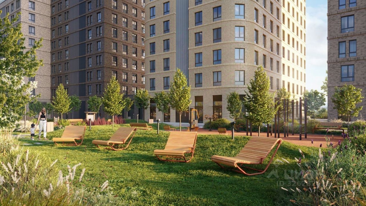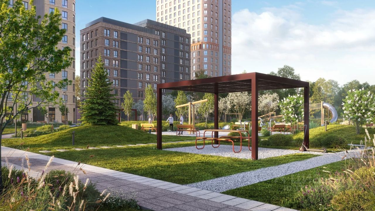 Благоустройство Благоустроенная территория комплекса делится на внешнюю и внутреннюю. Внутренняя часть - это закрытый двор 0,9 га, где обустраиваются детские площадки для разных возрастных групп, беседки для отдыха и работы, несколько спортивных зон, включая воркаут-зоны и лужайку для бадминтона. Здесь же появится ухоженный луг с прогулочными маршрутами. Рядом с жилым комплексом будет создан ландшафтный парк площадью 2,4 га. В парке будут высажены высокие деревья, луговые травы и кустарники, благоустроены лаунж-зоны у пруда, дорожки для бега и прогулок. В центре парка предусмотрена событийная площадь, рядом расположатся дополнительные спортивные и детские площадки, а также зона для выгула домашних питомцев.