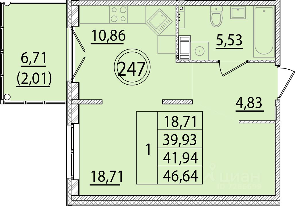 Жилая площадь18,7 м2