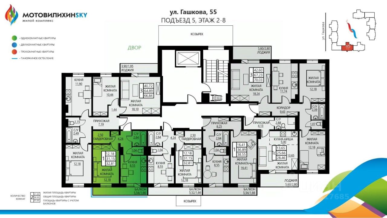Продаётся 1-комнатная квартира в строящемся доме (Гашкова, 55 (позиция 12)), срок сдачи: I-кв. 2027, общей площадью 32.81 кв.м., на 5 этаже. Глобальный проект новостроек на Вышке-2 в Перми стартовал в 2012 году. Общая площадь застраиваемой территории - 21 га, объем строительства - 187 000 квадратных метров.