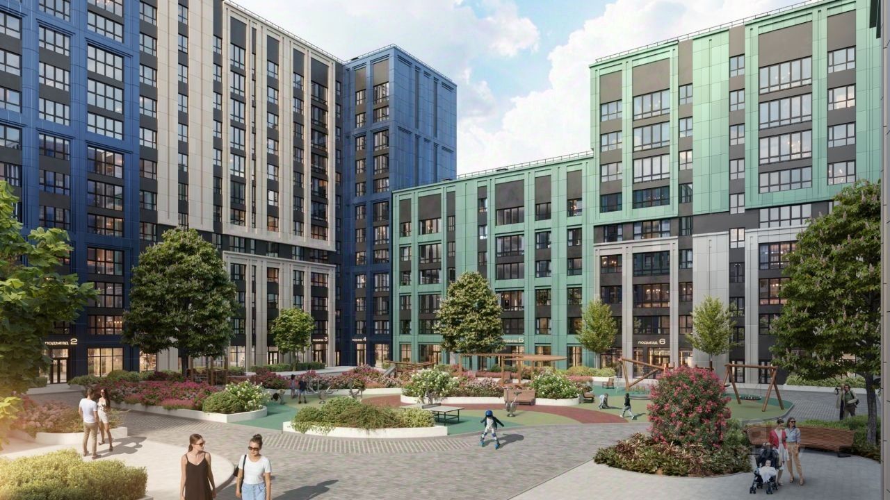 Социальная инфраструктура: — Школа на 1 800 мест в составе проекта, — Детский сад на 300 мест, — Дворец культуры, IT-школа, торговые зоны, — Парки, скверы и площадки — всё рядом.