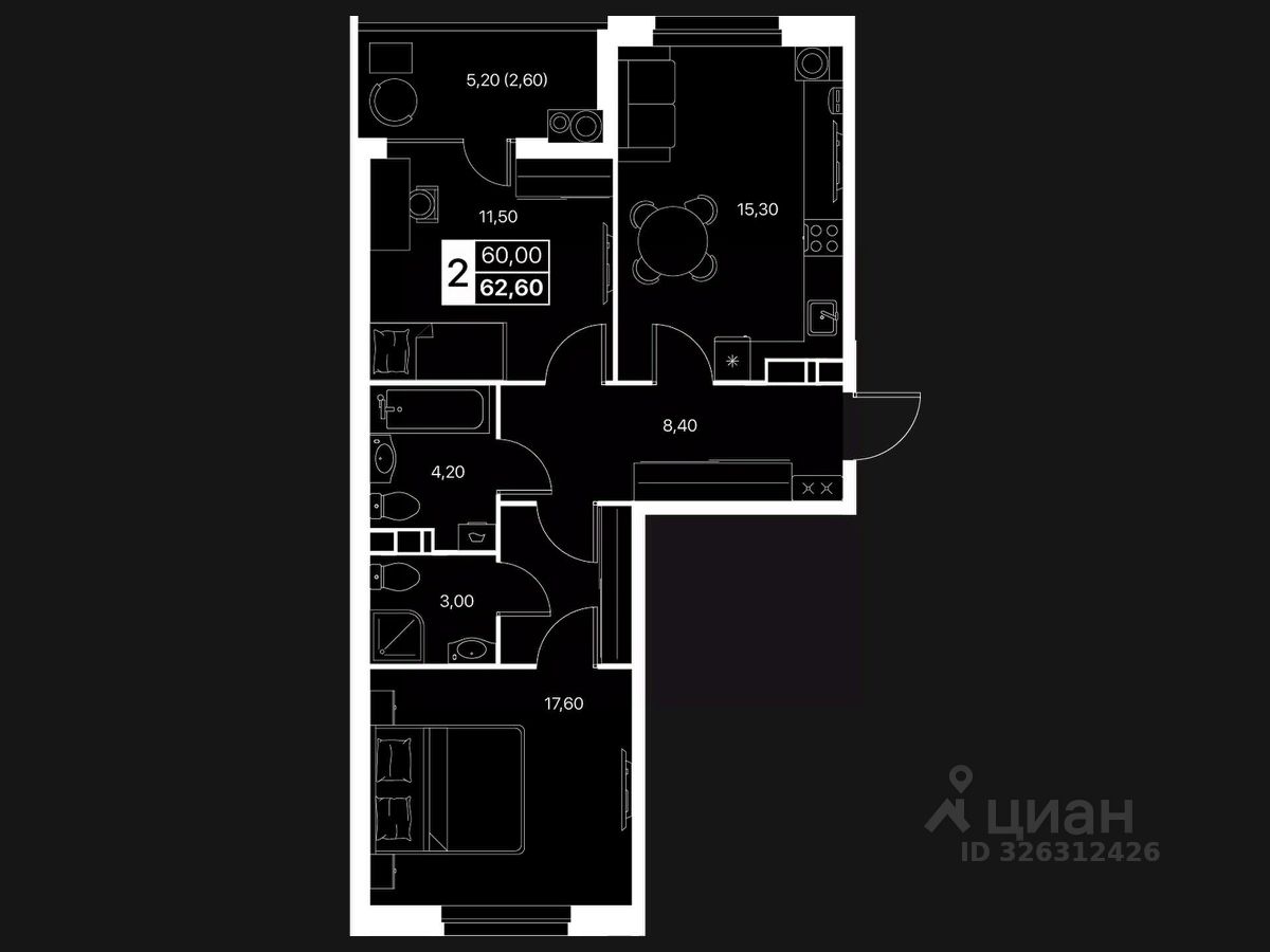ДВУХКОМНАТНАЯ КВАРТИРА Идеальный формат для семьи или тех, кто ценит пространство: — Большая кухня-гостиная — Отдельная спальня — Возможность выделить рабочую зону — Тишина, тепло, удобная планировка — Большие окна и много света