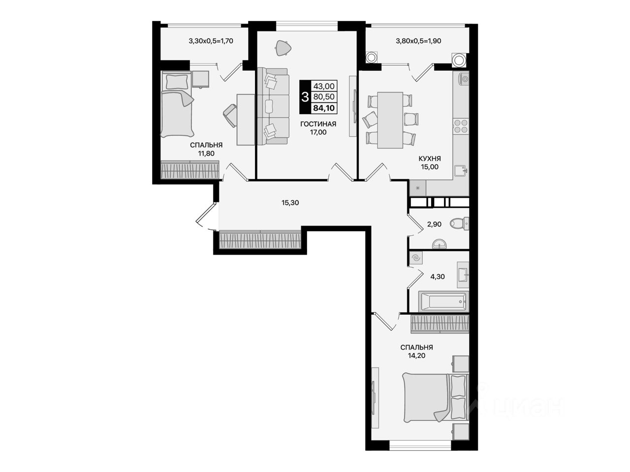 Почему 3-комнатная — лучший выбор: Достаточно личного пространства всем членам семьи, Комфортная кухня-гостиная, Подходит для семьи с детьми или двух поколений, Отличная ликвидность — трешки дорожают быстрее, Удобно жить, удобно сдавать.