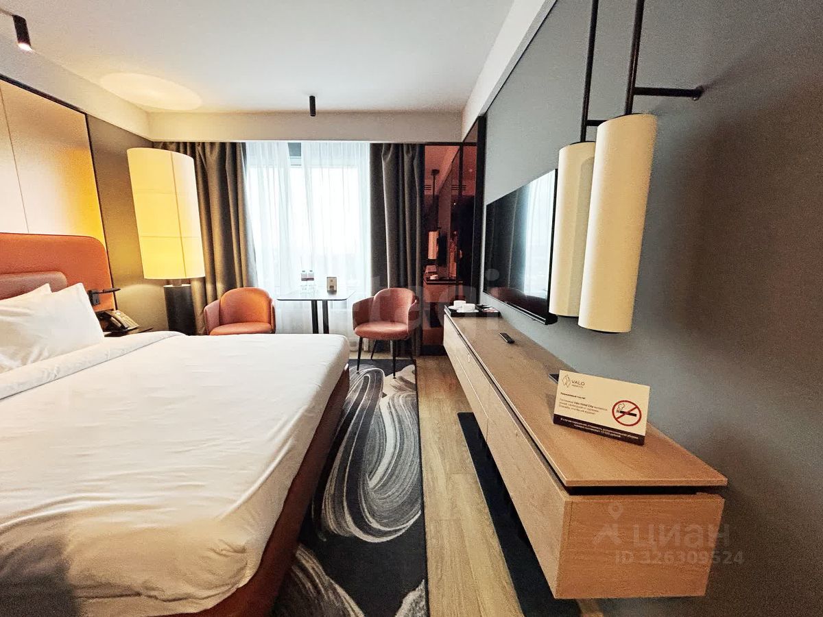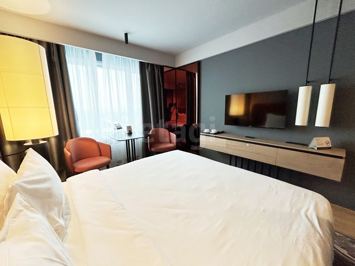 Премиум-инфраструктура отеля в вашем распоряжении: собственный SPA, бассейн, рестораны, лаунж-бар, конференц-залы, паркинг и ресепшн 24/7. Это повышает стоимость проживания и привлекательность апартаментов.
