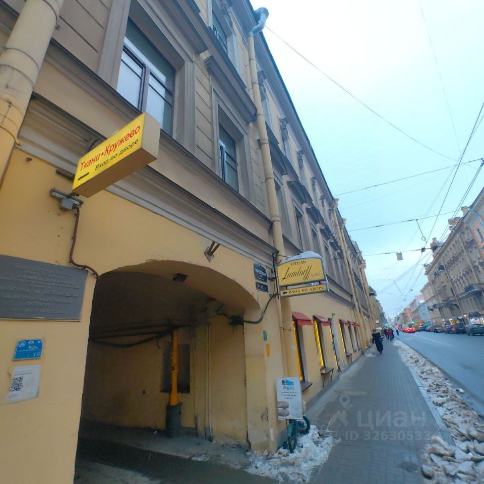 Расположение: Самый центр города! 3 минуты пешком до станций метро ''Садовая'', ''Спасская'', ''Сенная площадь''. Высокий пешеходный и автомобильный трафик. Помещение: 1 этаж жилого дома, вход со двора, косметический ремонт, санузел. Парковка: Возможность парковки во дворе и на улице. Окружение: Исторический район с преобладанием жилой застройки, что обеспечивает стабильный поток потенциальных клиентов.
