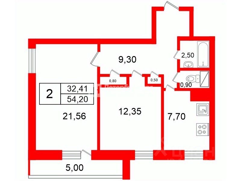 Предлагаем вашему вниманию двухкомнатную квартиру общей площадью 54,2 кв. м в престижном Красногвардейском районе Санкт-Петербурга.