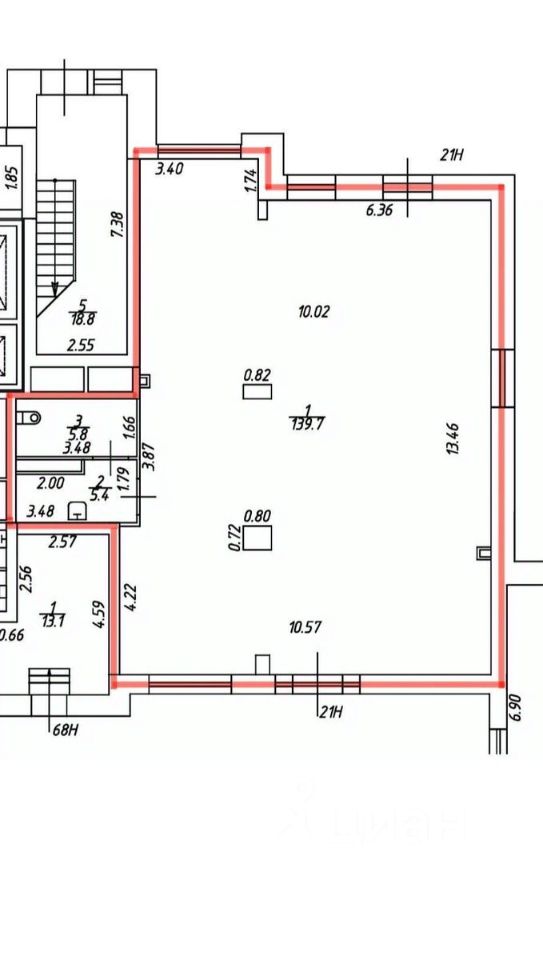 Помещение угловое, на перекрёстке с плотной застройкой.