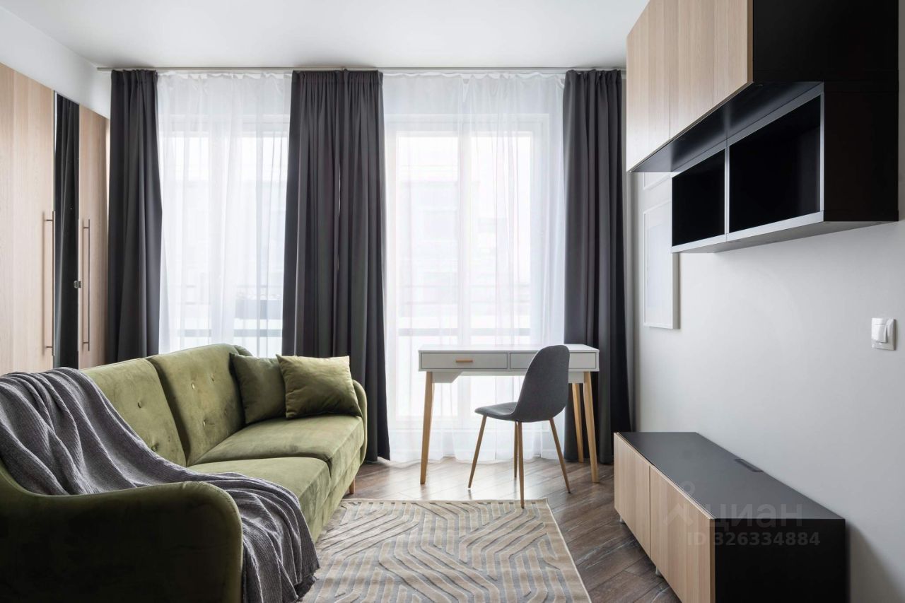 Удобная для жизни планировка: прихожая плавно перетекает в почти тридцатиметровое пространство кухни-гостиной, где уместились зоны готовки и отдыха, круглый обеденный стол, объемные шкафы и даже рабочий уголок. Из гостиной можно пройти в уединенную, отделенную от общего пространства, спальню, к которой присоединен глубокий, по-шведски спланированный балкон, легко становящийся в летнее время дополнительной комнатой. Рядом со спальней расположен большой санузел с ванной и окном. Кухня оборудована необходимой техникой. В ванной установлена стиральная машина с функцией сушки. Диван в гостиной раскладывается. В санузле оборудован теплый пол.