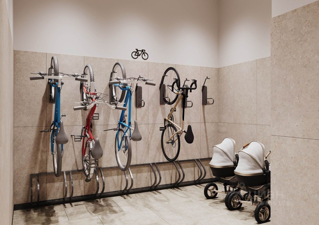 — видеонаблюдение 24/7, — двор без машин, — кладовые и подземный паркинг с выходом из лифта, — помещение для хранения колясок и велосипедов, — коммерция на первых этажах.