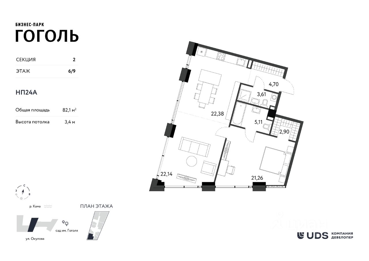 Расположенный в исторической части города, на первой линии Камы, ''Гоголь'' объединяет в себе энергию делового центра и спокойствие набережной.