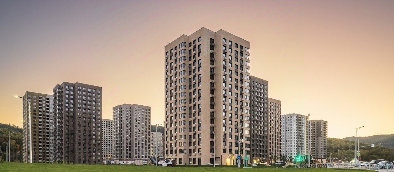 Дома жилого квартала живописным каскадом поднимутся вверх по сопке. Благодаря такой застройке, большим окнам и лоджиям в квартирах всегда будет много естественного света.