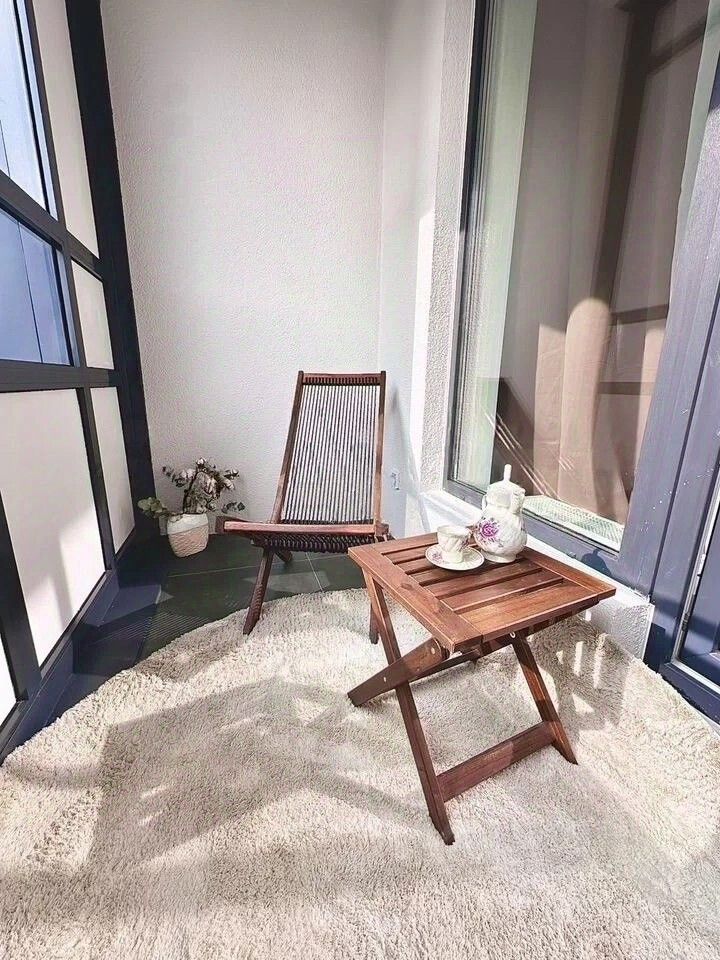 Лоджия с удобным креслом и столиком — идеальное место для утреннего кофе или вечернего бокала вина.