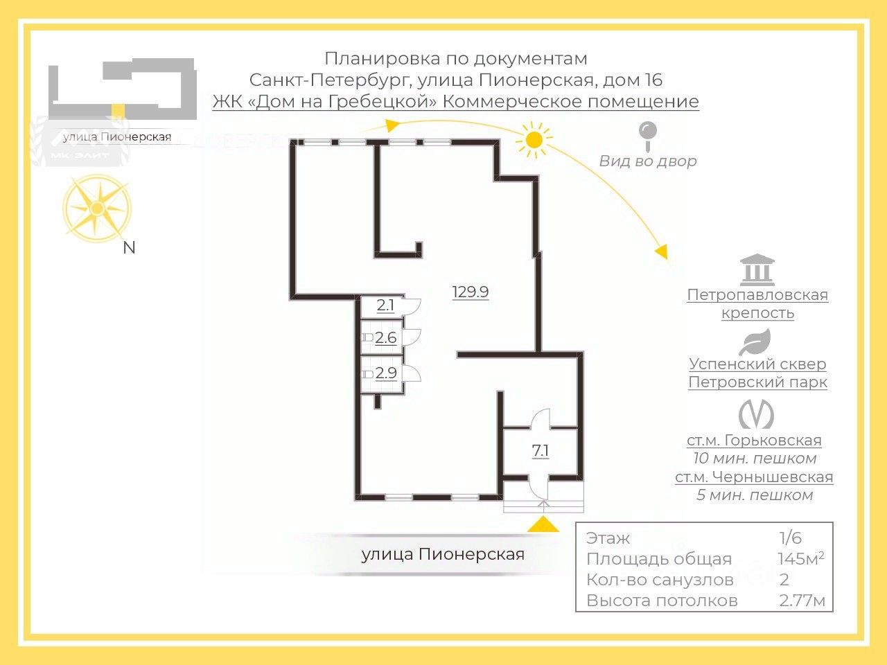 Жилой комплекс Дом на Гребецкой. У помещения отдельный вход с улицы Пионерская, витринные окна, двусторонняя планировка. Парковка вдоль улицы Пионерская.