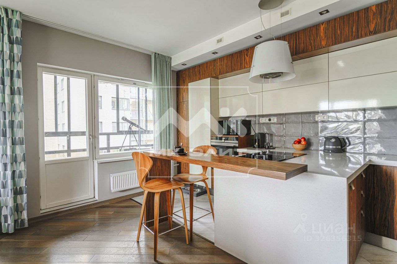 Характеристики квартиры: • Просторная квартира с 2 спальнями • Большая кухня-гостиная площадью 40 м² (возможно при необходимости сделать 3-ю спальню) • Качественный дизайнерский ремонт с использованием премиальных материалов: - Напольное покрытие: дубовая массивная доска - Кухонный гарнитур из шпона палисандра - Встроенная техника Siemens (варочная панель, духовой шкаф) - Предметы мебели BoConcept - Сантехника Villeroy & Boch с антигрязевым покрытием - Стиральная и сушильная машины Miele