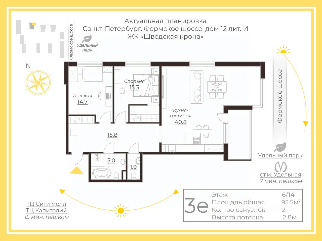 Уникальное расположение: • Жилой комплекс расположен фактически на территории одного из лучших парков, Удельного • Круглогодичный доступ к природе: свежий воздух, прогулочные дорожки, велодорожки • Всего 7 минут пешком до станции метро ''Удельная'' и железнодорожной платформы • Быстрая транспортная доступность: 20 минут до центра города