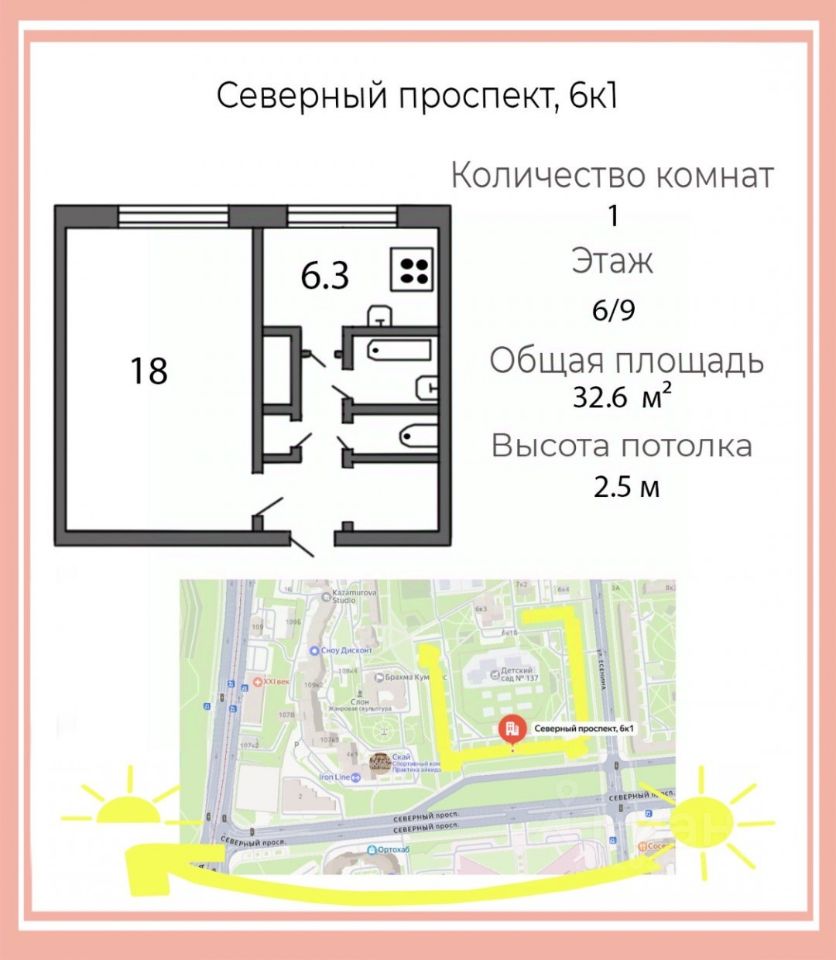 Особенности квартиры: Функциональная планировка с просторным холлом, где организована просторная гардеробная 2,5 квм. Раздельный санузел — дополнительное преимущество для комфортногопроживания Возможность реализовать любые дизайнерские решения благодаря состоянию под ремонт Окна выходят на тихую улицу Во дворе всегда есть места для парковки Тихие спокойные соседи Инфраструктура района: • Развитая социальная инфраструктура Магазины, политики , больницы, школа и детский сад во дворе ! Удобная транспортная развязка, остановка транспорта рядом с домом. Благоустроенные дворы и зоны отдыха 15 мин. до парка Сосновка. 15 мин. до озера с пляжами. Преимущества покупки: Чистая юридическая история Один собственник с момента постройки Возможность быстрого выхода на сделку Потенциал для создания идеального жилья под себя Цена: 6 800 000? Площадь: 32,6 Этаж: 6 Звоните прямо сейчас для просмотра!Организуем показ в удобное для вас время.