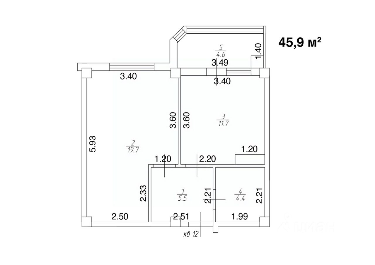 Общая площадь45,9 м2