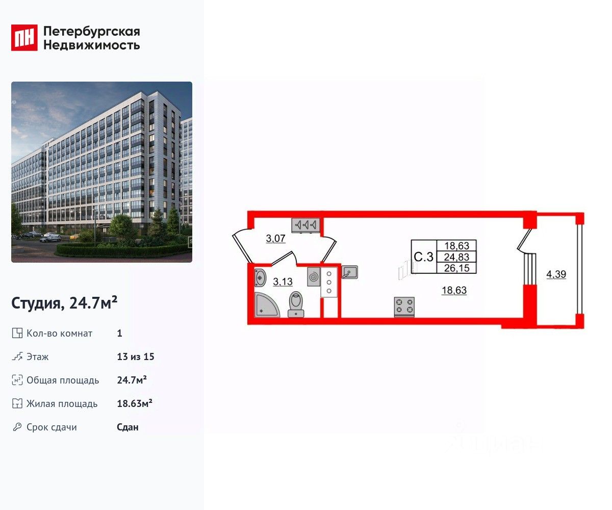 Продается просторная студия в жилом комплексе ''Pulse Premier'' в активно развивающимся Невском районе. До метро можно добраться на транспорте всего за 10 минут. Удобная, классическая, функциональная европланировка, вместительная прихожая 3.07 м². Общая площадь студии - 24.7 м², жилая 18.63 м², высота потолка 2.77 м. Квартира продается с отделкой ''NORD LINE WHITE''. Что особенного в ЖК ''Pulse Premier''? • Премиальные виды на Неву • Отличная транспортная доступность: 2 станции метро и крупные магистрали • Пешеходный променад с ландшафтным дизайном и зонами отдыха • Центр притяжения - городская площадь у набережной с современным благоустройством • Алюминиевые окна в квартирах High Flat (последние этажи)