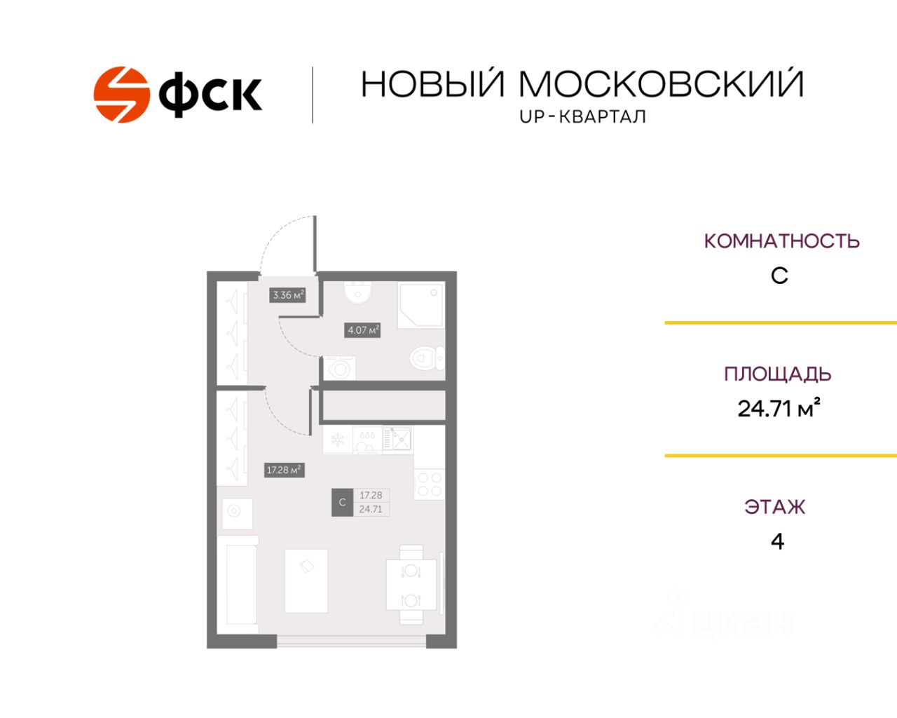 Прямая продажа от застройщика. Беспроцентная рассрочка. Студия в ЖК Up-квартал ''Новый Московский'' на 4-м этаже. Общая площадь 24,9. Без отделки.