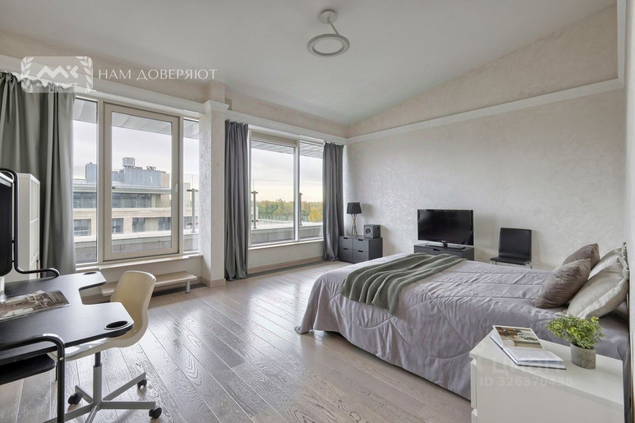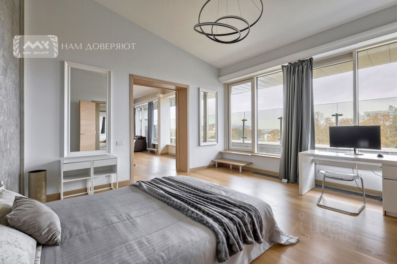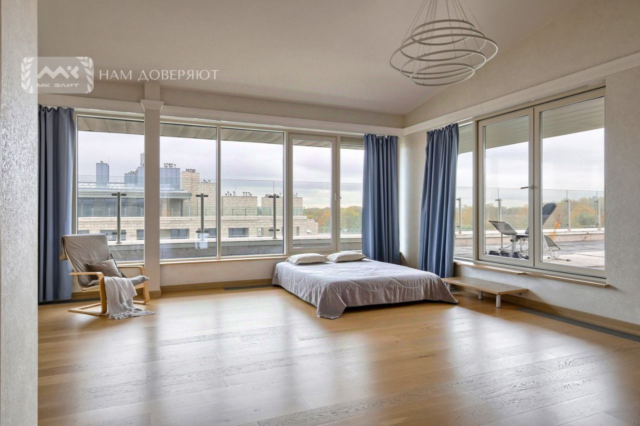 Лучшая квартира в этом доме. Последний этаж. Общая площадь квартиры 210 кв. м, площадь террасы 280 кв. м. Окна квартиры и терраса обращены к Елагину острову и к Большой Невке. Из каждого окна, из каждой комнаты есть вид на парк и воду. Создается впечатление, что дом расположен в ухоженном парке. Из квартиры открываются потрясающие виды: Елагин остров, Большая Невка, Финский залив, стадион на Крестовском. Окна выходят на три стороны света: юг, запад и восток.