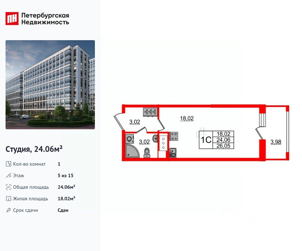 Продается уютная студия в жилом комплексе ''Pulse Premier'' в активно развивающимся Невском районе. До метро можно добраться на транспорте всего за 10 минут. Удобная, классическая, функциональная европланировка, вместительная прихожая 3.02 м². Общая площадь студии - 24.06 м², жилая 18.02 м², высота потолка 2.77 м. Квартира продается с отделкой ''NORD LINE WHITE ВК''. Что особенного в ЖК ''Pulse Premier''? • Премиальные виды на Неву • Отличная транспортная доступность: 2 станции метро и крупные магистрали • Пешеходный променад с ландшафтным дизайном и зонами отдыха • Центр притяжения - городская площадь у набережной с современным благоустройством • Алюминиевые окна в квартирах High Flat (последние этажи)