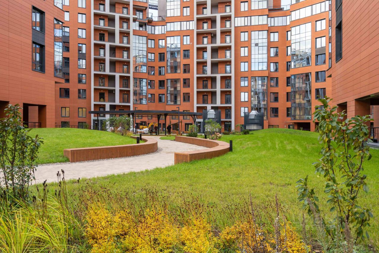 Дом: Закрытая охраняемая территория. Пандус с озеленением и детскими площадками. Вход в парадную с улицы и с пандуса. Есть подземный паркинг.