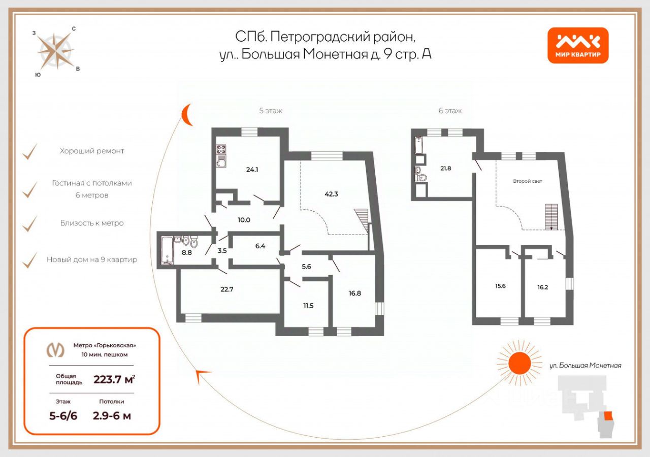 продам 5-к, Большая Монетная, 9а58 800 000 ₽