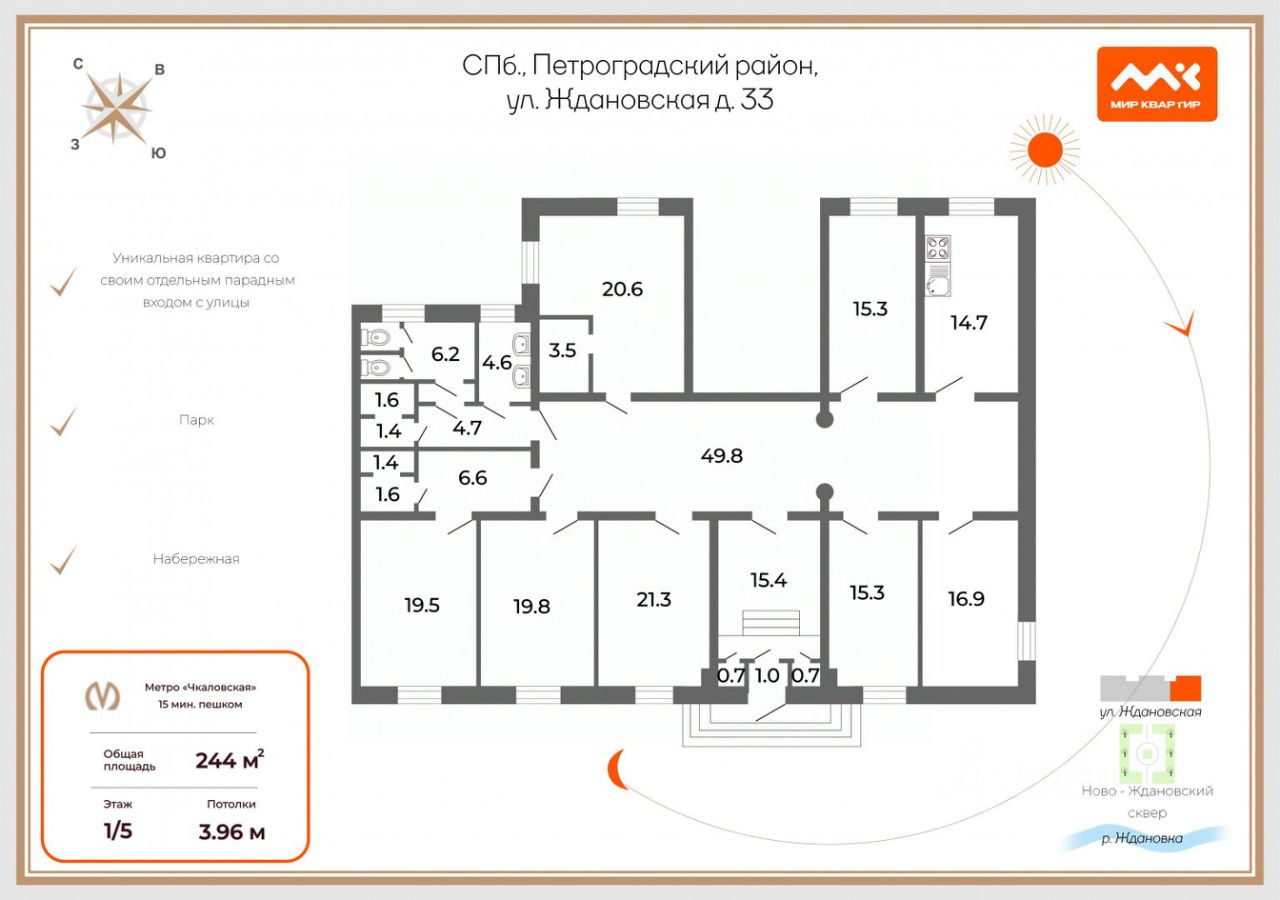 Квартира 244 м2 со своим отдельным парадным входом с Ждановской улицы!