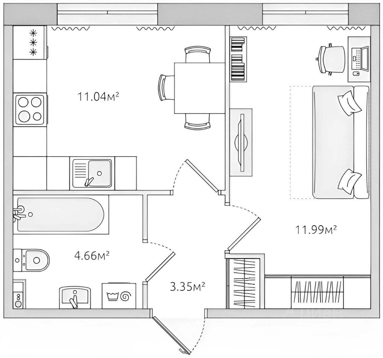 Квартира с евроремонтом и полностью меблирована. В кухне и комнате есть вся необходимая мебель для комфортного проживания. Ванная комната оборудована современной душевой кабиной. В квартире установлена вся необходимая техника: кондиционер, холодильник, посудомоечная и стиральная машины, а также телевизор. Благодаря интернету, вы всегда будете на связи.