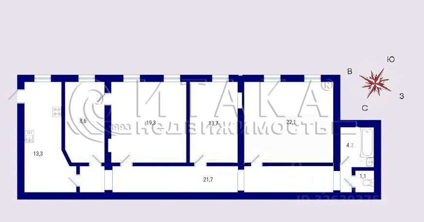 1-92765 Продается в лучшей локации, от метро Василеостровская 3 минуты пешком, просторная четырехкомнатная квартира. Общий метраж 104 м2. В комнатах 22.10 м2 и 19.3 м2 по два окна, что создает особую атмосферу в квартире. В комнатах 19.3 м2 и 8.6 м2 стены не несущие, можно сделать удобную для Вас перепланировку. Большая кухня 13.3 м2. Раздельный санузел и ванная комната 4.2 м2 и 1.2 м2, были отремонтированы, новые трубы. Поменяна электрика. В квартире частично установлены стеклопакеты, положен ламинат. Подходим под все формы взаиморасчетов с Покупателем. Два взрослых Продавца. Материнский капитал не использовали. Никто не зарегистрирован. Собственность более 10 лет. Готовы быстро выйти на сделку и предоставить полный пакет документов.