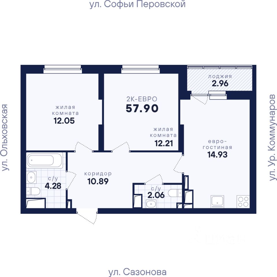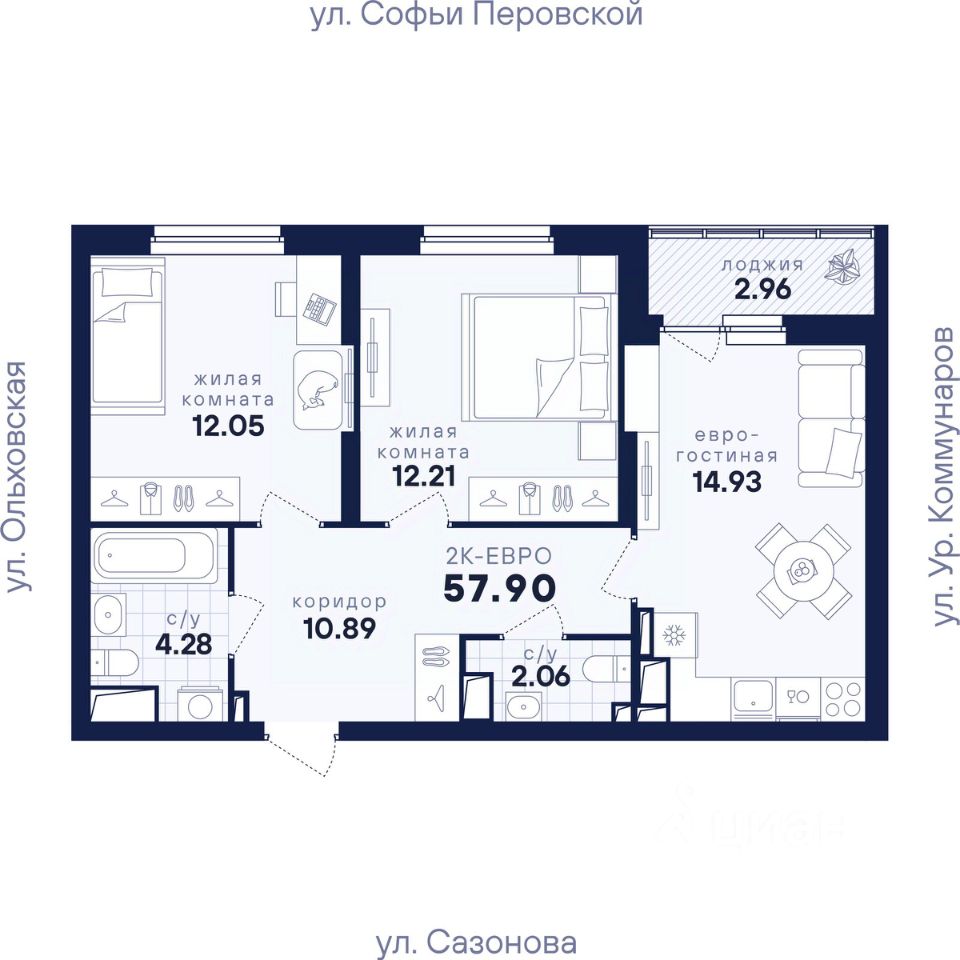 Общая площадь57,9 м2