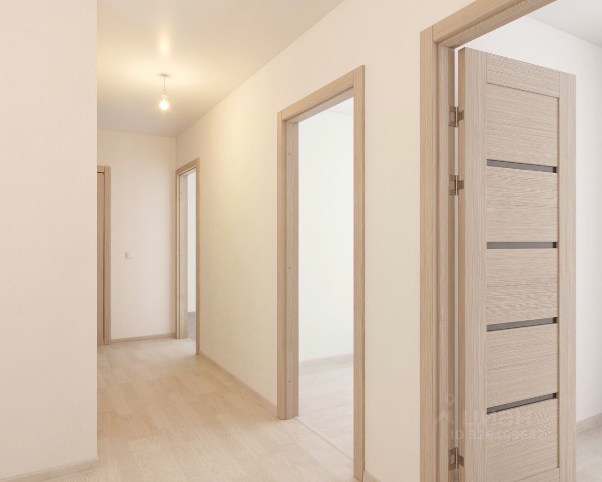 На полу в комнатах, прихожих и кухнях — прочный водостойкий ламинат, в санузлах — керамическая плитка, потолки — натяжные Межкомнатные двери и усиленная сейф-дверь на входе в квартиру В санузлах установлены раковины и унитазы, а во всей квартире — розетки и выключатели Радиаторы с терморегуляторами и горизонтальной разводкой, двухкамерные стеклопакеты с приточными клапанами вентиляции