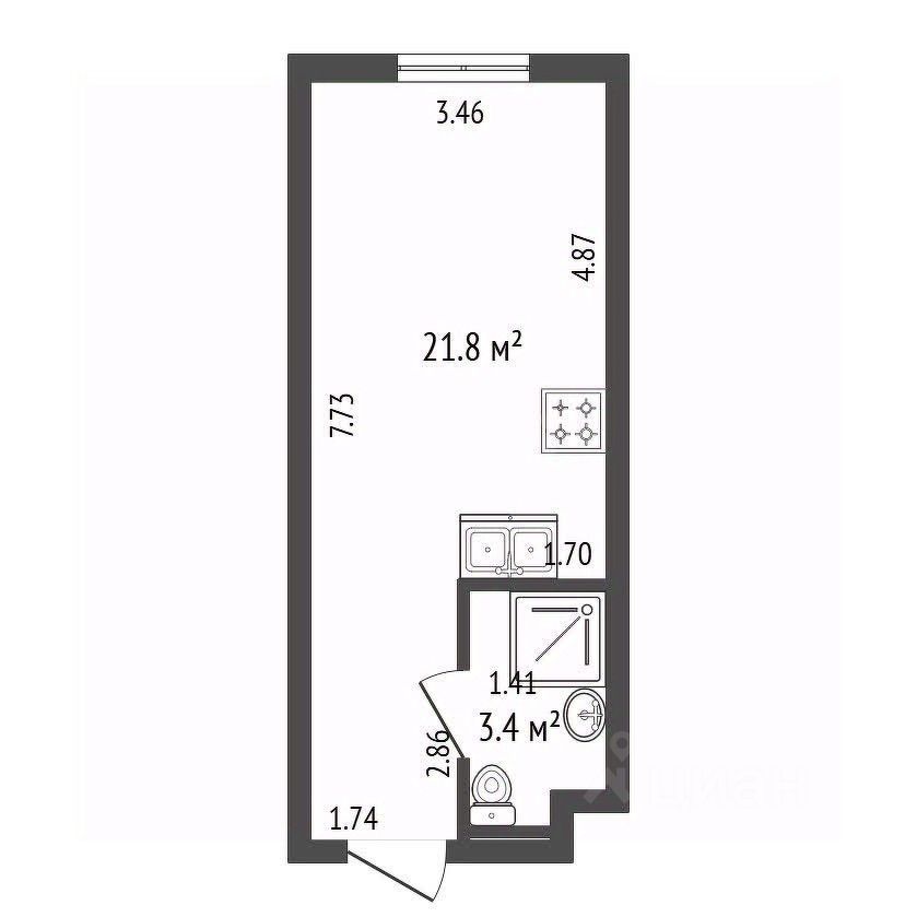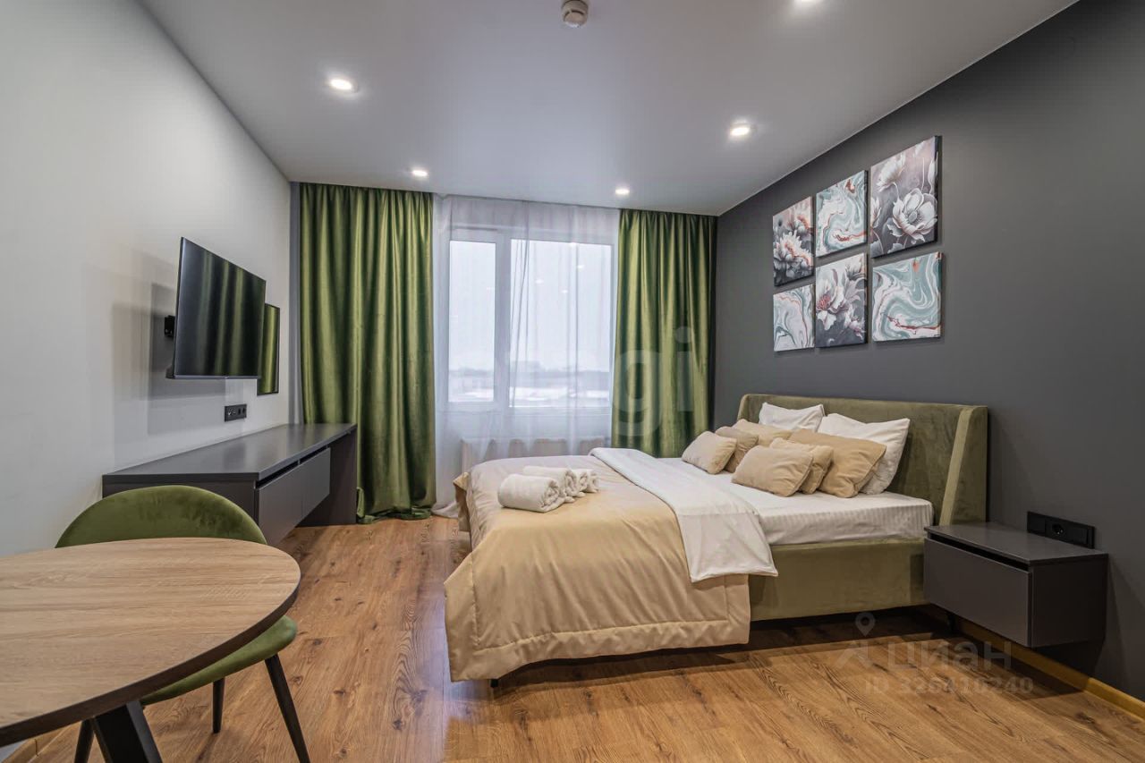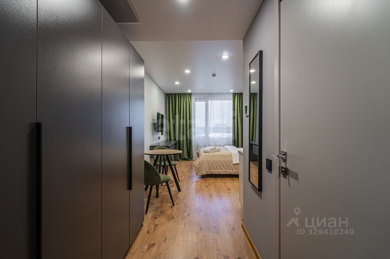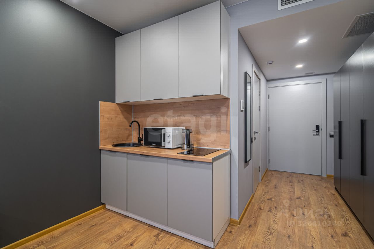 Апартамент 25,2 м²: 7 этаж, полная меблировка, техника, Smart TV, кондиционер, рабочая зона, стильная душевая, быстрый Wi-Fi, — всё готово для проживания или аренды.