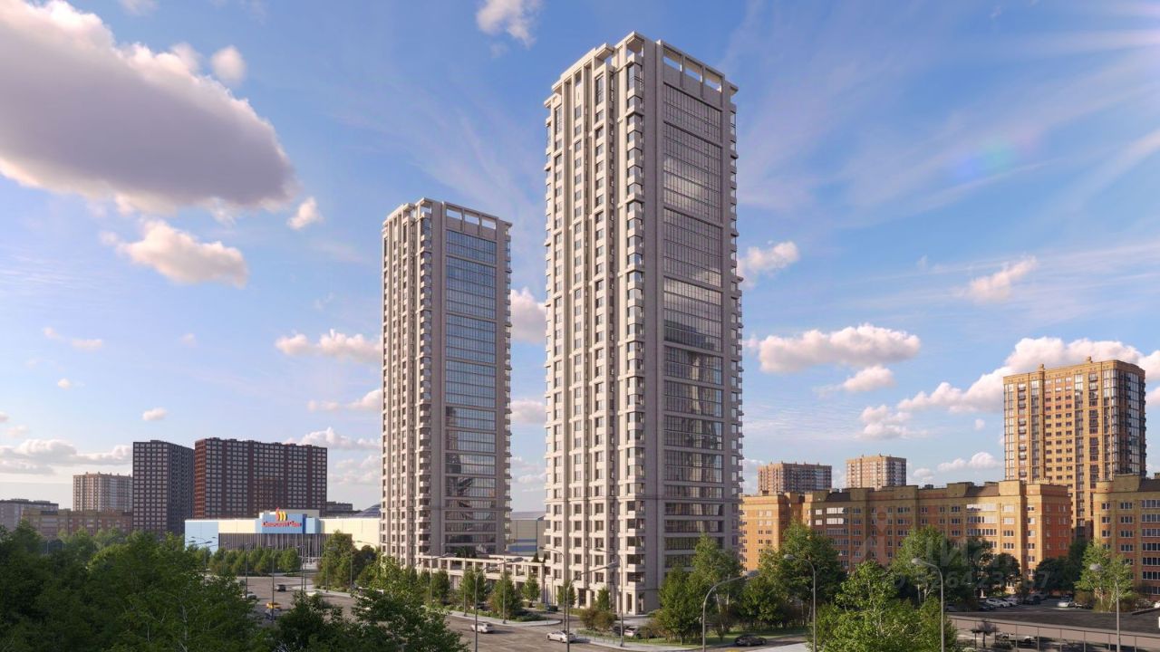 АРХИТЕКТУРА Комплекс представляет замкнутую постройку из трех башен. Две башни 30 этажей и одна 25-этажная расположены в шахматном порядке, что позволяет создать парадную симметрию и в то же время разреженную, ''проницаемую'' структуру застройки всего комплекса. При этом башни расставлены с оптимальными паузами, чтобы каждому метру доставалось максимум солнца. Архитектурно-художественный образ выполнен в стиле модернизма в современном прочтении. В отделке фасадов использован облицовочный кирпич белого цвета разных тонов. Комплекс строится по технологии монолитный каркас с кирпичным заполнением, облицовка декоративным керамическим белым кирпичом. А кладка наружной версты уступами, наличие ниш, поясов и эркеров добавляет фасадам пластики. В то же время комплекс зданий смотрится цельным и единым благодаря общей фактуре. Первые этажи с помещениями общественного назначения объединены в один общий стилобат с одноэтажным ритейлом с эксплуатируемой кровлей. Из каждой башни можно легко попасть в лобби, бассейн со SPA-комплексом, фитнес-зал, паркинг не выходя на улицу.