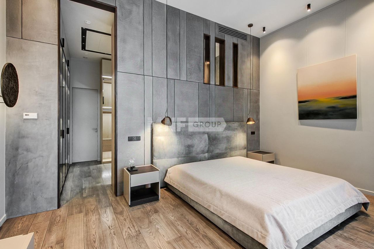Лот: 102288. В продаже апартамент с авторской отделкой в комплексе Art Residence в 12 минутах пешком от Белой площади. Планировка: просторная гостиная, кухня, мастер-спальня с собственной ванной и гардеробной, 2 спальни с ванной комнатой, гостевой санузел, гардеробная. Выполнена отделка в современном стиле, кухня Modulnova оснащена функциональной бытовой техникой, диван Baxter, стулья Cattelan Italia, мебель в коридоре Riva1920, мебель в спальне Baxter. В квартире установлена приточно-вытяжная вентиляция, канальное кондиционирование, система увлажнения воздуха, аудиосистема Sonos. Окна с панорамным остеклением выходят на 2 стороны света: на тихую улицу Ямского поля и благоустроенный двор соседнего жилого комплекса SLAVA. Высота потолков до 4,1 метра.